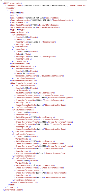 For incoming messages, mapping is often required between the external item units and those stored in Business Central. For this purpose, the EDX module provides appropriate mapping tables.