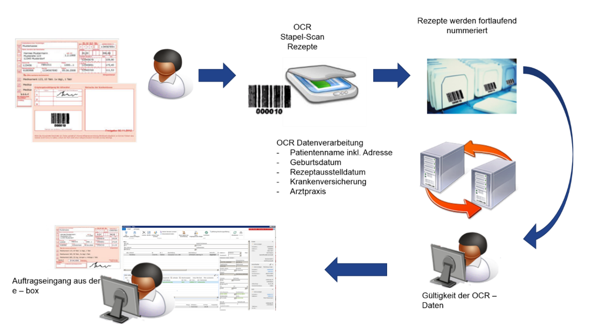 - Eingehende Dokumente (Rezept, Kostenvoranschläge und sonstige Dokumente)