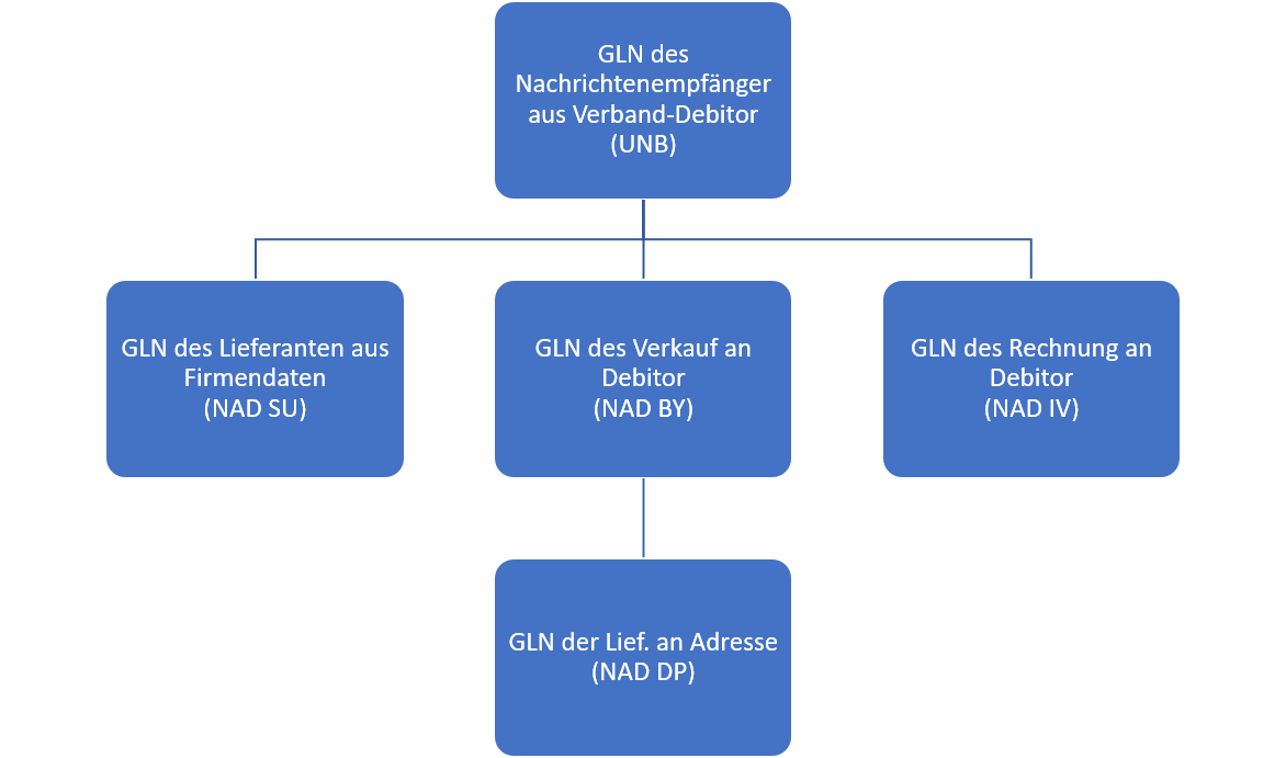 • Je nach Geschäftsvorfall (Bestellung, Verkaufsrechnung senden usw.) wird das Element Receiver mit den Daten des "Einkauf von Kreditor" bzw. "Verkauf an Debitor" initialisiert.