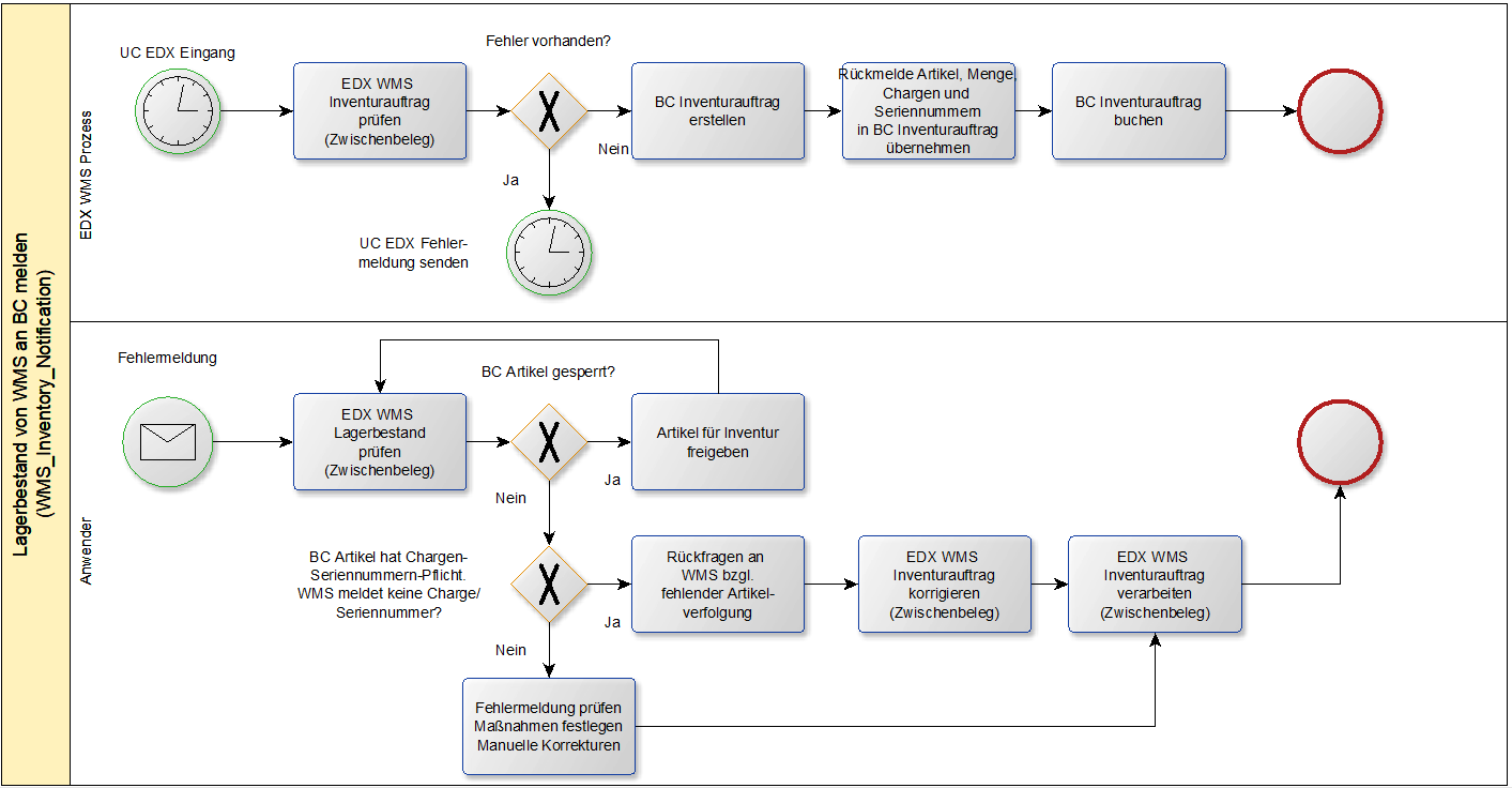 Die Nachricht kann mit dem EDX Zwischenbeleg "WMS Lagerbestand“ bearbeitet werden.