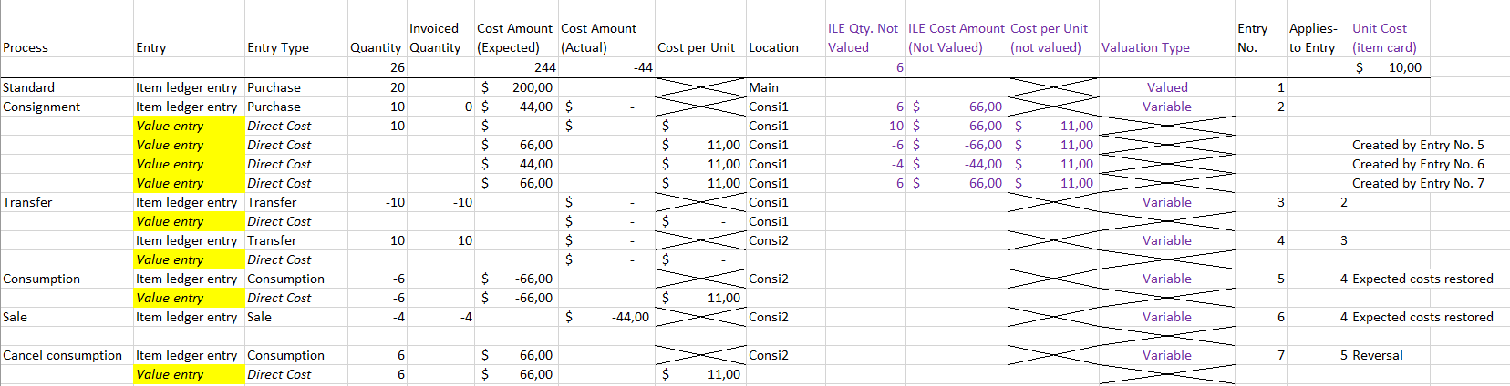 | Posting Date | Is filled in from the item ledger entry. |