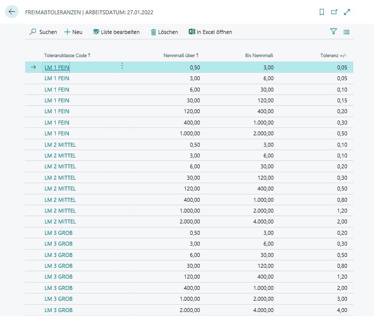 Die Manuelle Freimaßtoleranzklasse gemäß Prüfplanzeile |