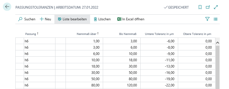 | Passung | Die Passung gemäß Prüfplanzeile. |