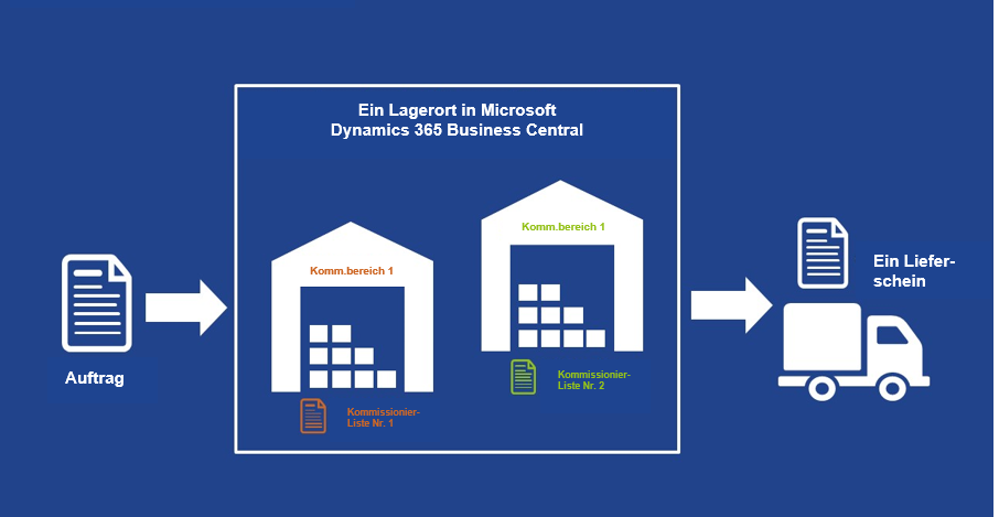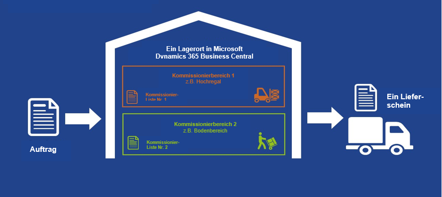 In einem Lagerort werden Kleinteile von Hand und Sperrteile mit dem Stapler kommissioniert. Sie bekommen nun jeweils für den Bereich Kleinteile als auch für die Sperrteile eine gesonderte Kommissionierliste. Ihr Kunde bekommt jedoch nur einen Lieferschein.